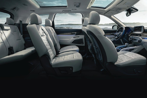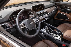 Malgré son design extérieur audacieux, c’est derrière le volant que le Kia Telluride 2020 nous a conquis. La performance de conduite exceptionnelle, sa tenue de route impressionnante et la maniabilité du véhicule nous mettent en confiance. L’habitacle est aussi très silencieux. L’ensemble des versions du Kia Telluride sont traction intégrale et ont un moteur Atkinson GDI V6 3,8L. Le Kia Telluride est certainement dans les VUS de sa catégorie le plus luxueux avec son interface multimédia avec écran tactile de 10,25po et navigateur intégré, son système de connections UVO, ses chargeurs USB à 1er / 2e / 3e rangées, son chargeur de téléphone sans fil, sa clé intelligente avec démarrage à bouton-poussoir, son hayon électrique intelligent, son régulateur automatique de la température à trois zones, sa garniture intérieure en similibois, sa commande du climatiseur à l’arrière et son éclairage intérieur DEL. Ce n’est qu’un échantillon des commodités et technologies qu’on retrouve à bord du Kia Telluride 2020.